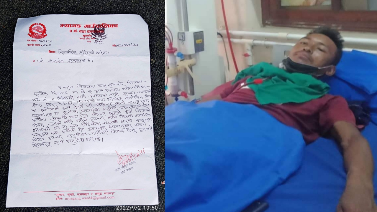 मिर्गौला पिडित म्यागङ -४ किम्ताङका विरबहादुर तामाङलाई आर्थिक सहयोगको अपिल गरिएको छ।