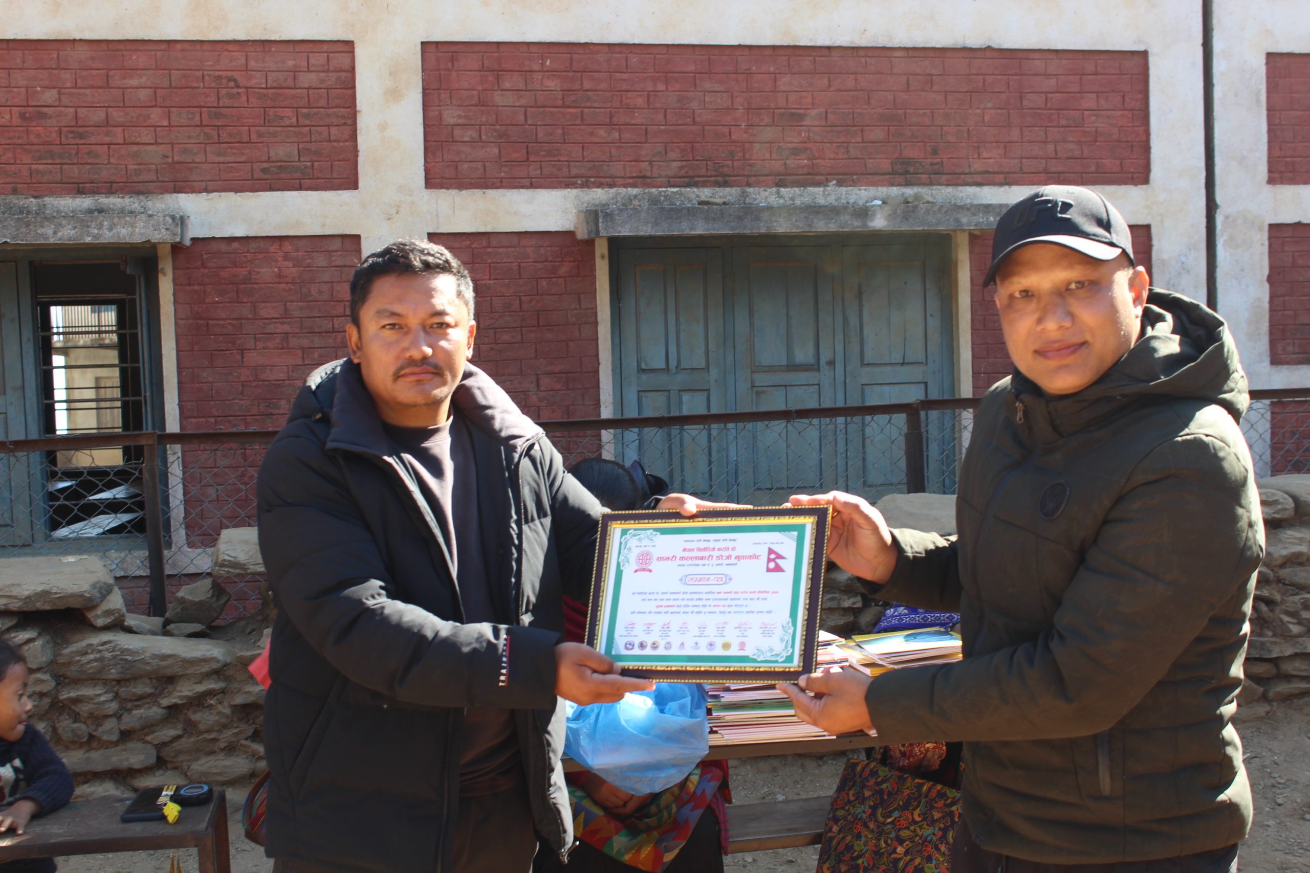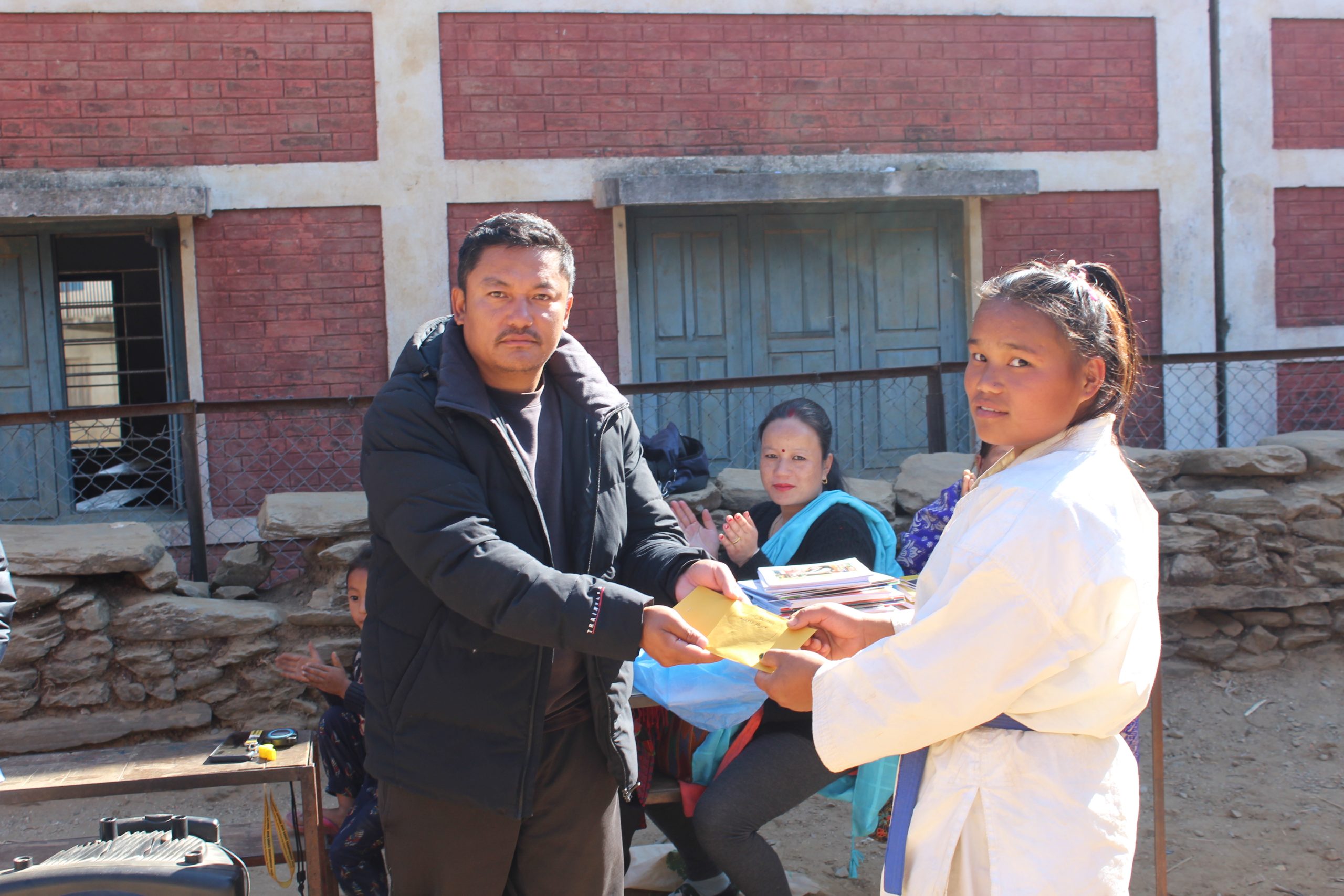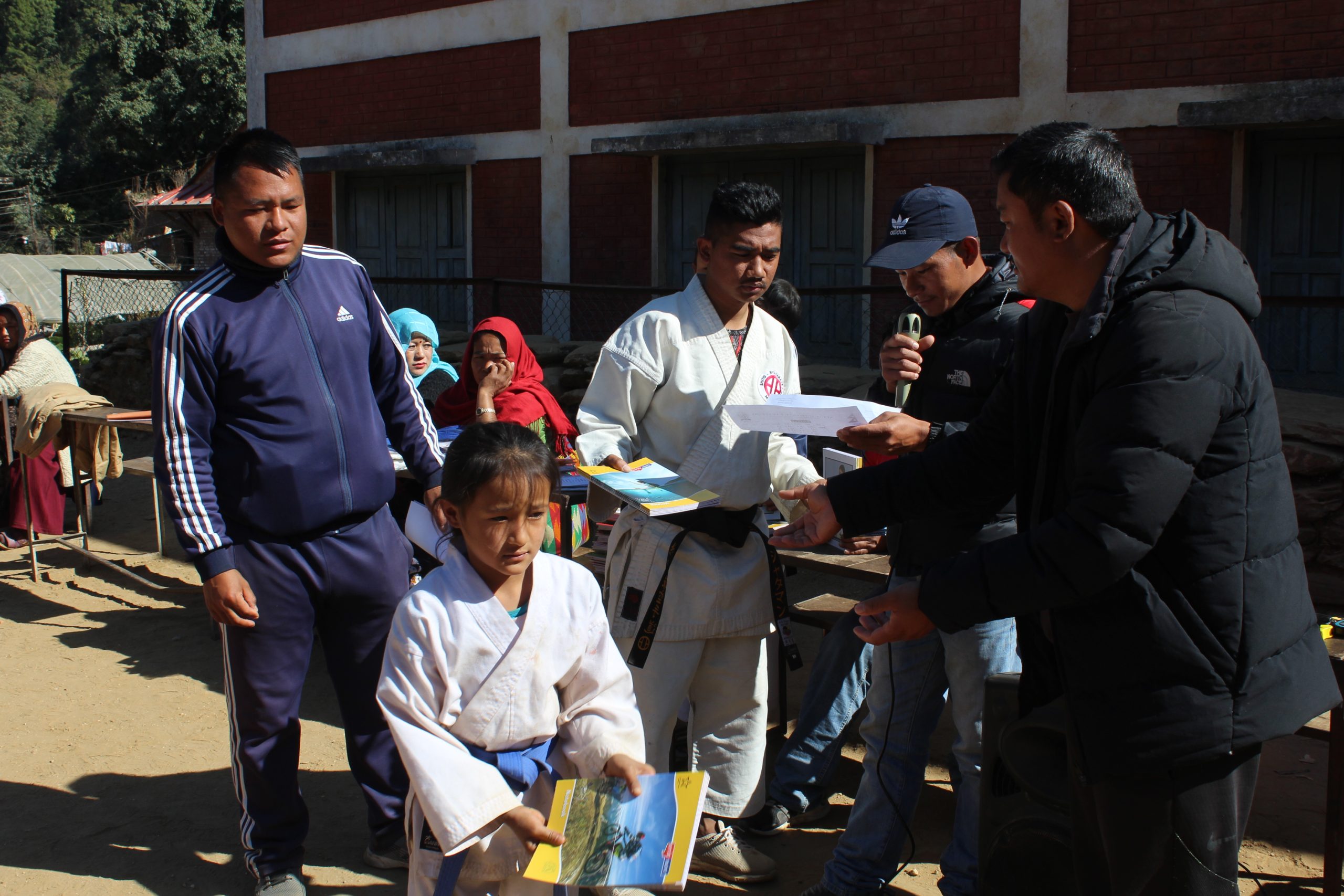 प्रशिक्षक गणेश तामाङद्वारा खेलाडी भाई-बहिनीहरुलाई कापी कलम वितरण गरिनुका साथै गोल्ड मेडल जित्न सफल रोशनी तामाङलाई आर्थिक सहयोग गरेर हौसला प्रदान गरेका थिए।