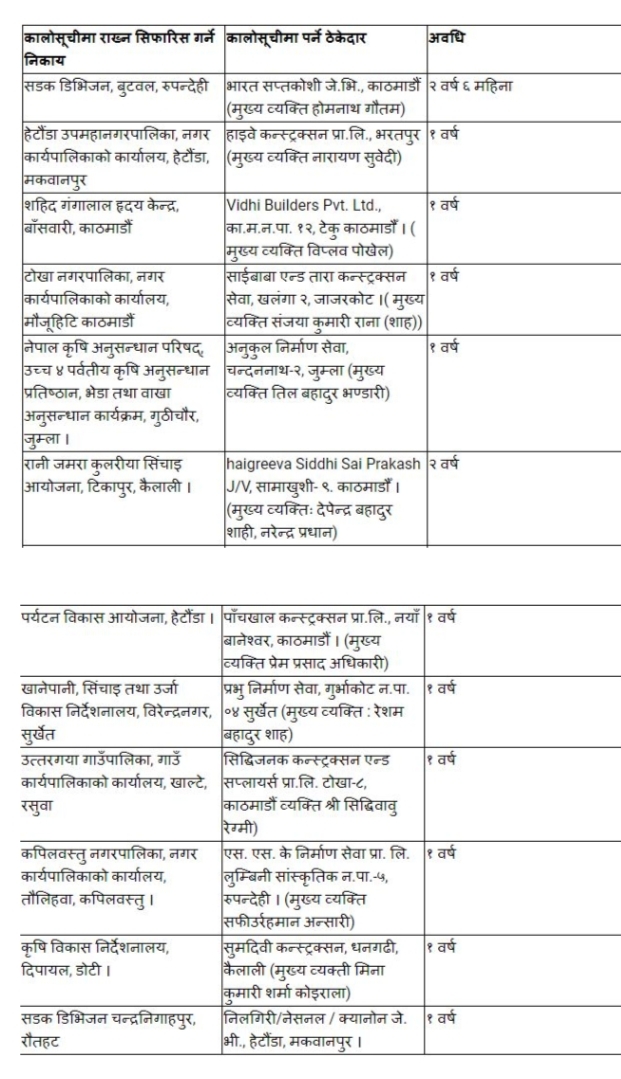 सार्वजनिक खरिद अनुगमन कार्यालयले ठेक्का अलपत्र पार्ने १२ ठेकेदार कम्पनीहरूलाई कालोसूचीमा राखेको छ।