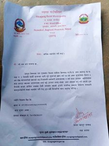 म्यागङ ५ ओढारे देखि जोरचौतारो सम्म लिभिङ वाटरको खानेपानी योजना