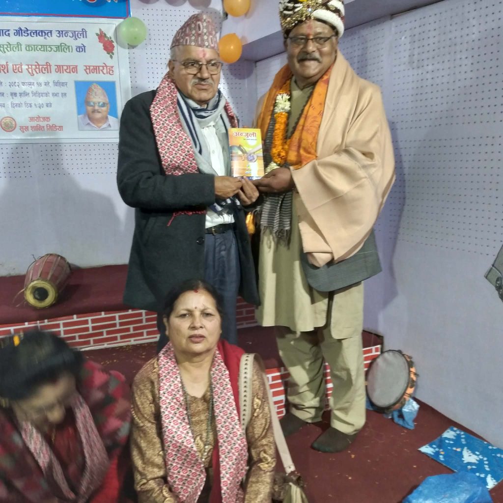उक्त कार्यक्रममा शिक्षाविद् इन्द्रविलास घिमिरे , व्याकरणविद पुरूषाेत्तम भण्डारी , वरिष्ठ साहित्यकार चन्द्रा न्याैपाने , सम्पादक शिव शर्मा , प्रकाशन धन गाैडेल, धरहरा अभियन्ता डा. ध्रुबप्रसाद गजुरेल, क्रान्तिकारी कवि रसुवाली कवि, सुसेली फाउन्डेसनकि उपाध्यक्ष सुशीला ढकाल अधिकारी , पूर्व सेनानी टङ्कबहादुर बजगाई खत्री लगायतकाे उपस्थितिमा अन्जली (वृहत् सुसेली काव्याञ्जलि ) काे लाेकार्पण सम्पन्न भयाे।